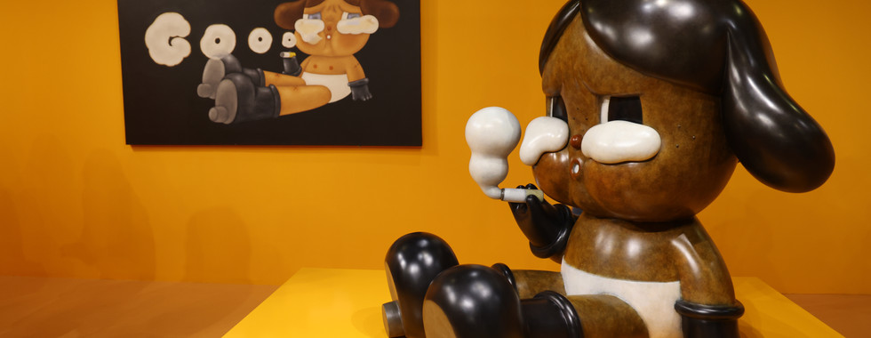 ในนิทรรศการโซนหลักชั้น 2 เราก็จะได้พบกับผลงาน Crybaby มากมาย ทั้งประติมากรรม ภาพเพ้นท์ พร้อมกับจุดถ่ายรูปอีกมายมาย และยังมีโซนที่จะให้ออกแบบคาแรคเตอร์ Crybaby ให้ออกมาเป็นสไตล์เรา ให้เหล่าสายอาร์ตได้ไปทดลองเล่นกันอีกด้วย